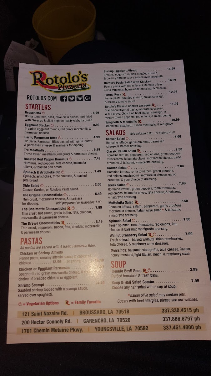 Rotolo's Pizzeria offers a diverse and delicious menu, making it a great choice for anyone craving a satisfying meal in Carencro, LA. The menu features a wide range of options, from refreshing drinks like Unsweet Tea, Sprite, and Lemonade, to mouth-watering pizza, calzones, sandwiches, and more.